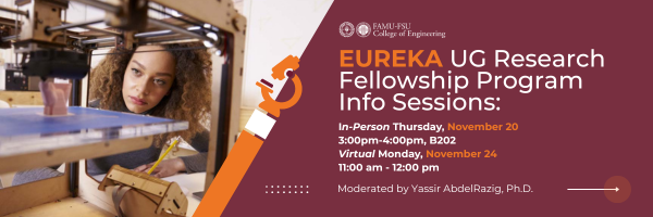 Learn about the EUREKA Fellowship Program and the application process at https://eng.famu.fsu.edu/eureka and join the Zoom info session.