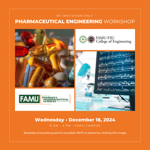 An invite-only workshop to strengthen interdisciplinary collaboration, explore innovative research synergies, and foster new projects that align with FAMU’s strategic goals. We invite all FAMU Pharmaceutical Technology and FAMU-FSU College of Engineering Department of Chemical & Biomedical Engineering faculty, graduate students and postdocs to attend, especially the morning session (before lunch).